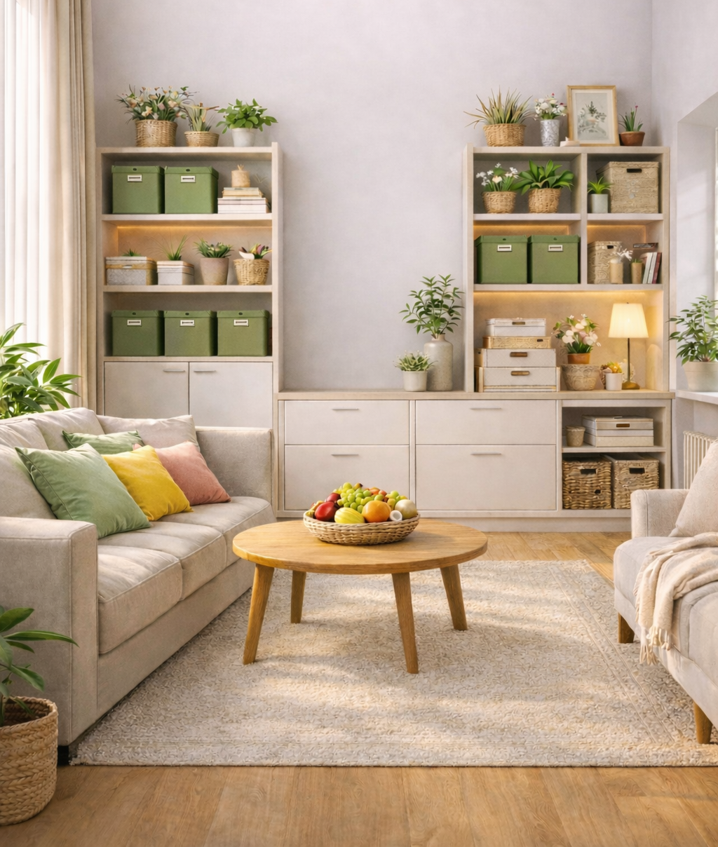 Un salon rangé, une maison apaisée
