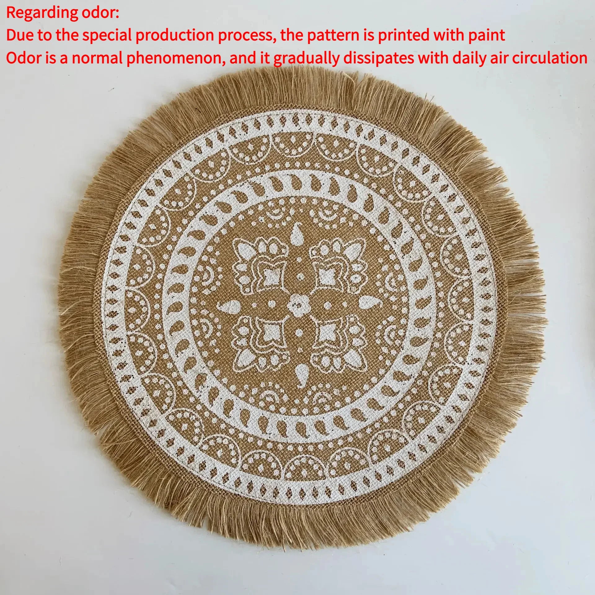 Apportez une touche chaleureuse et authentique à votre décoration de table grâce à ce set de table rond en jute et coton naturel. Idéal pour un style bohème chic, il s’utilise aussi bien à l’intérieur qu’à l’extérieur, du petit-déjeuner sur la terrasse au dîner festif entre amis.